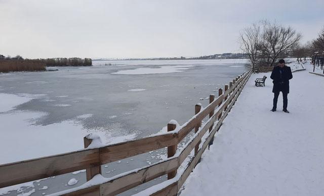 Ankara'da Mogan Gölü kısmen buz tuttu