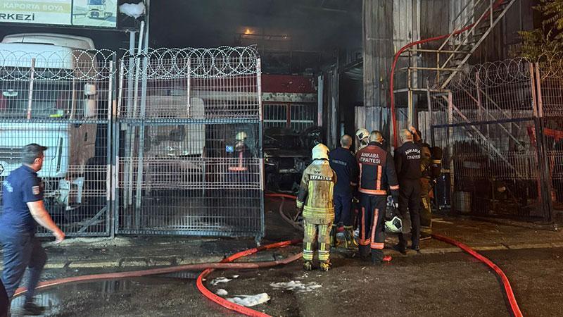 Ankara’da oto tamirhanesinde yangın; iş yerindeki araçlar zarar gördü