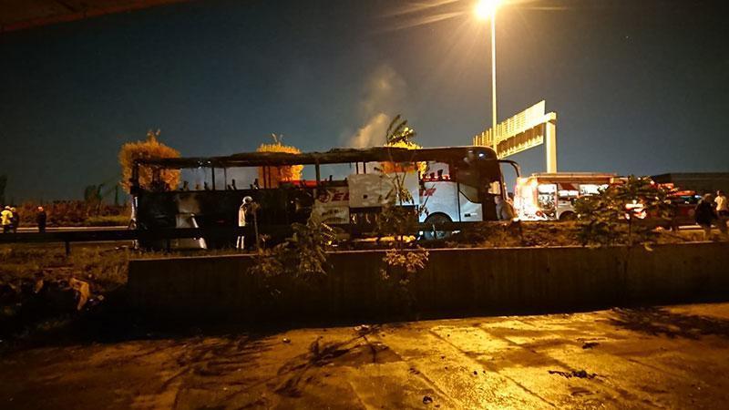Polis, karayolu üzerinde önlem alarak, trafik akışını durdurdu. Yangın ise çok sayıda itfaiye ekibinin yoğun çabasıyla söndürülürken, otobüs kullanılamaz hale geldi. Can kaybı ve yaralının olmadığı yangında birçok yolcunun valizlerinin yandığı öğrenildi. Bölgeden uzaklaştırılan yolcuların bir başta otobüsle seyahate devam edeceği öğrenildi.