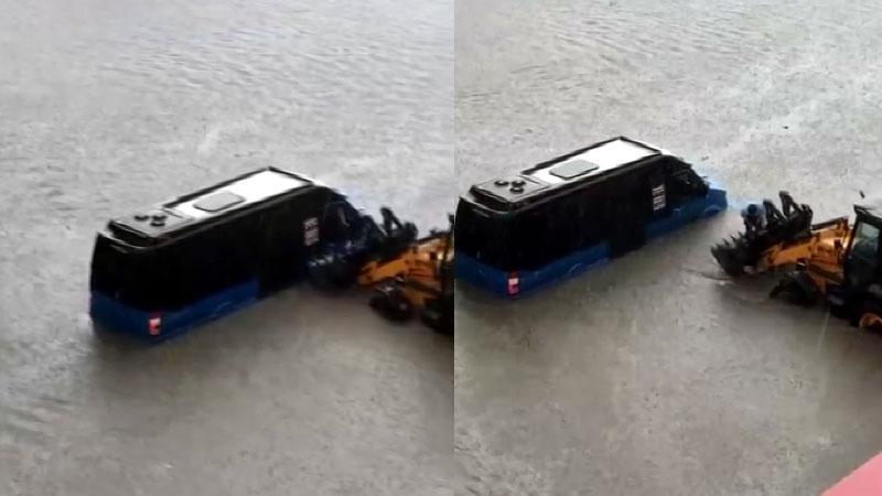 Ankara'da sağanak; yolu su bastı, minibüstekiler iş makinesiyle kurtarıldı