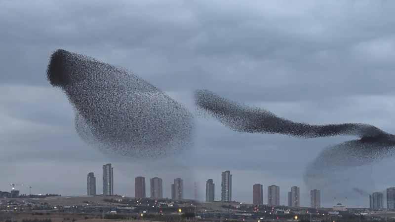 Ankara'da sığırcıkların gökyüzündeki dansı kamerada
