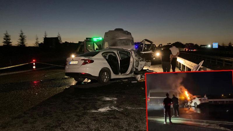 Ankara'da ters yönde ilerleyen otomobil minibüsle çarpışarak alev aldı: 1 ölü, 1 yaralı