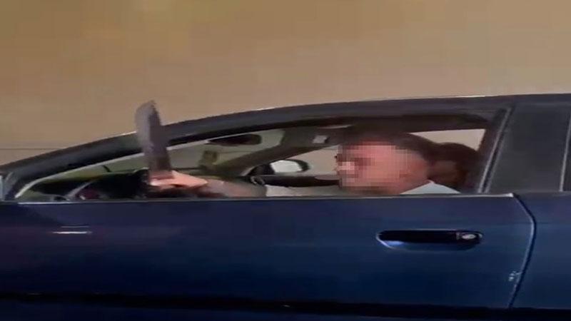 Elindeki kılıçla iki kez araca vurarak hasar veren sürücünün, diğer aracı bir süre takip ettiği ve durdurmaya çalıştığı öğrenildi. Trafik magandasının kılıcı savurduğu anlar ise araçtakiler tarafından cep telefonuyla kaydedildi.