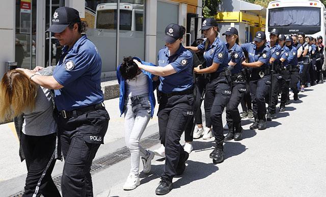 Şüphelilerden 26'sı, emniyetteki sorguları ardından savcılık talimatıyla serbest bırakıldı. 1 haftalık gözaltı sürelerinde işlemleri tamamlanan 28'i kadın 99 şüpheli ise bugün adliyeye sevk edildi. Elleri arkadan kelepçelenen şüpheliler, Emniyet Müdürlüğü'nden çıkarılıp araçlara bindirilerek Ankara Adliyesi'ne götürüldü. Şüphelilerin savcılıkta sorguları sürüyor.
