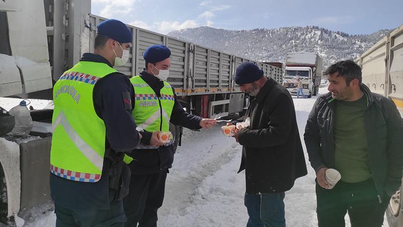 İç Anadolu'yu Akdeniz'e bağlayan en önemli yol olan Antalya-Konya yolunda, 1825 rakımlı Alacabel'de kar kalınlığı, 50 santimetreye ulaştı. Yoğun kar yağışı, buzlanma ve tipi nedeniyle yol, dün saat 21.00 sıralarında TIR geçişine, sabah saatlerinde de araç trafiğine kapatıldı. Karayolları ekiplerinin çalışmalarının ardından yol, TIR geçişlerine 18 saat, araç trafiğine ise 9 saat sonra açıldı. Jandarma ekipleri, yolda sürücülere çorba ikram etti. Kar temizleme çalışmaları sürüyor.