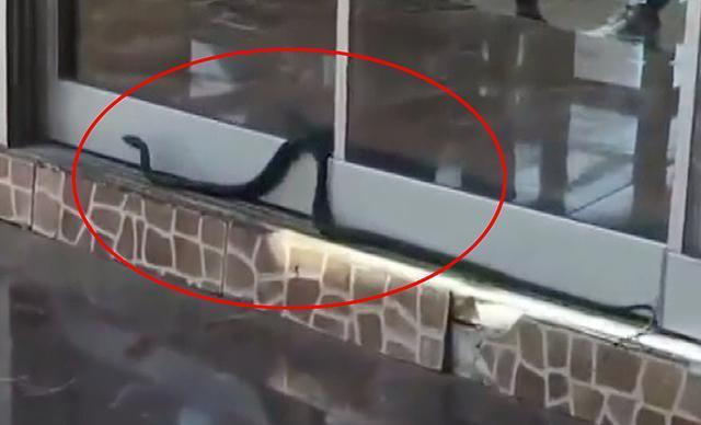 Antalya'da yaklaşık 1,5 metre uzunluğundaki karayılan, kentin işlek caddesinde korkuya neden oldu. Yılanın kapısı kapalı olan iş yerine girmeye çalıştığı anlar cep telefonu kamerasıyla görüntülendi.