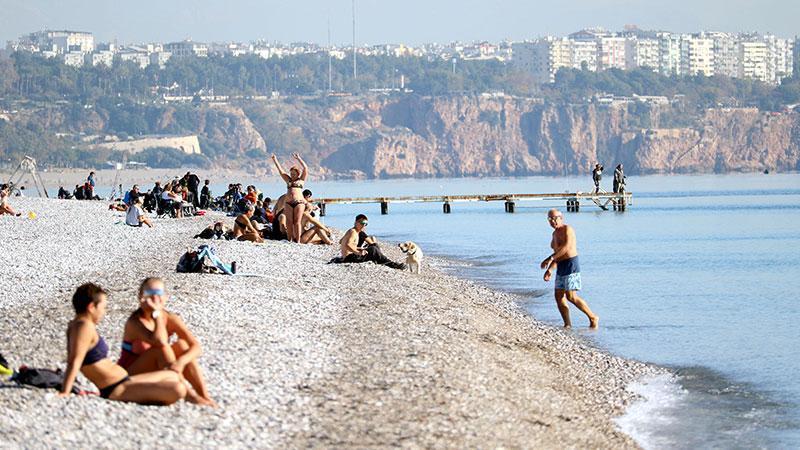 Antalya'da deniz suyu sıcaklığı 21 derece, sahil dolu