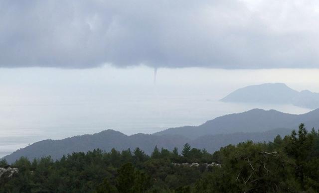 Antalya'nın Kemer ilçesinde denizde 2 hortum oluştu. Biri kıyıya yaklaşmadan kaybolan hortum, cep telefonu kamerasıyla görüntülendi.