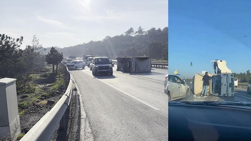 Arnavutköy yolunda zincirleme kaza: Kamyonet devrildi, şoförün yardımına çevredekiler koştu