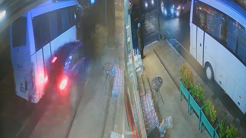 Kaza anı çevredeki bir iş yerinin güvenlik kamerasıyla kaydedildi. Görüntülerde, sürücüsünün direksiyon hakimiyetini kaybettiği otomobilin önce hafif ticari araca ardından park halindeki minibüse çarpması ve kazadan saniyeler önce midibüse binen kişinin son anda kurtulduğu anlar yer aldı.