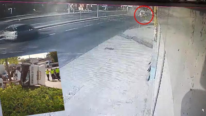 Kaza anı güvenlik kamerasına yansıdı. Görüntülerde tankerin trafikte seyir halindeyken öndeki baÅŸka bir tankere çarpmamak için manevra yaptığı anlar görülüyor. Manevranın ardından tanker kaldırıma çıkıyor ve yerinden kopan kupası devriliyor.Â