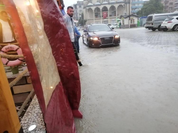 Arhavi ilçesinde sağanak nedeniyle tıkanan mazgallar su baskınlarına neden oldu.