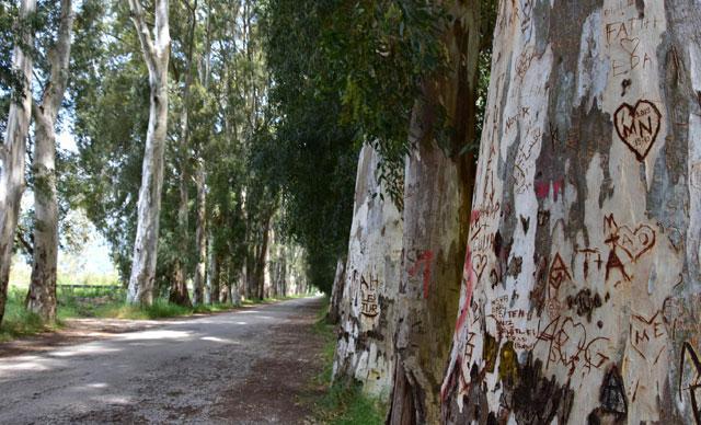 'Aşıklar Yolu'ndaki okaliptüs ağaçlarını yazı tahtasına çevirdiler