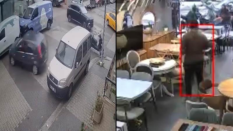 Ataşehir'de cipe çarpan otomobil restorandan çıkan müşterilerin arasına daldı; o anlar kamerada