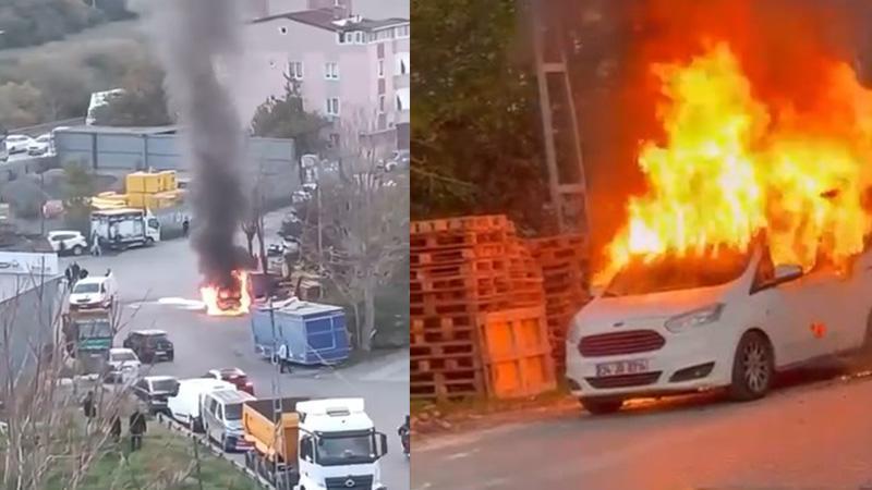 Ataşehir'de park halindeki hafif ticari araç alev alev yandı. İtfaiye ekiplerince söndürülen yangında araç kullanılamaz hale geldi.