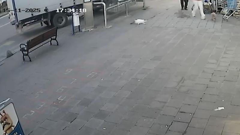 Görüntülerde, kamyonetin geri kayarak minibüse çarptığı, ardından yavaşça ilerleyip durağa girdiği görüldü. O sırada durakta bulunan bir kedi kaçarken, caddede yürüyen vatandaşlar ise panik yaşadı.