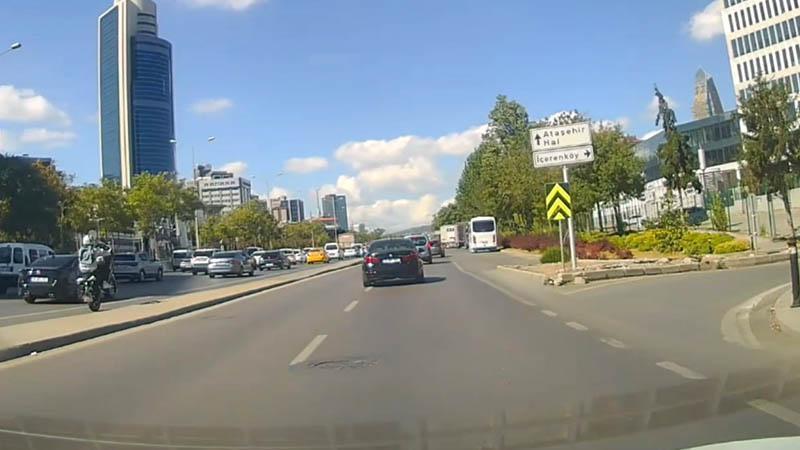 Olay, 14.00 sıralarında D-100 Karayolu Ataşehir mevkii Kadıköy istikametinde meydana geldi. Yolda ilerleyen motosiklet sürücüsünün uzun süre tek teker üzerinde giderek trafiği tehlikeye attığı anlar bir otomobilin araç içi kamerasına yansıdı.