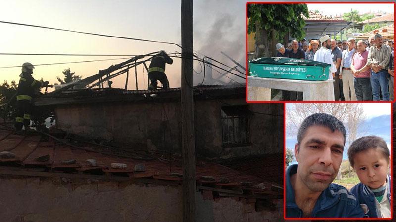Ateşe verdiği evde oğluyla birlikte ölen baba toprağa verildi