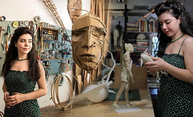 Heykeltıraş Yağmur Çalış, atık kağıttan birbirinden ilginç dev boyutta heykeller yapıyor.
