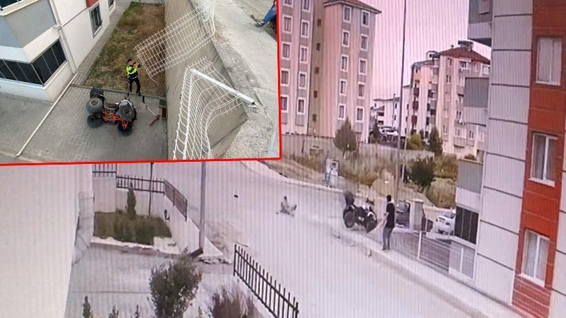 Karabük’te kontrolden çıkan ATV’den yola düşen çocuk yaralanırken, beraberinde bulunan sürücü yaya olarak kaçtı. Kısa süre sürücüsüz şekilde giden ATV ise 4 metre yükseklikten apartman bahçesine düştü. Kaza anı güvenlik kamerasına yansıdı.