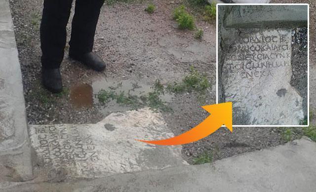 Avanos'ta bir evin bahçesinde Roma dönemi mezar taşı bulundu