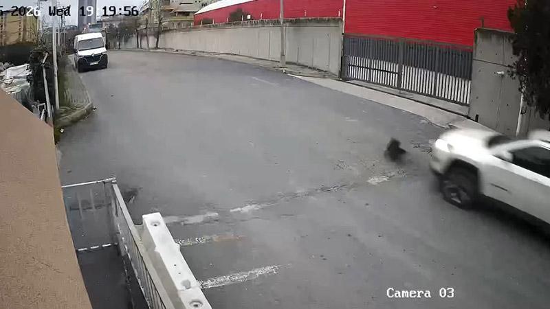Olay, 25 Mart Çarşamba günü saat 19.00 sıralarında Ambarlı Mahallesi’nde yaşandı. Cip sürücüsü yolda koşan köpeğin üzerinden geçti. Cip sürücüsü durmadan yoldan uzaklaşırken köpek kazada hafif yaralandı. Can havliyle kendini yolun kenarına atan köpeğin sahibi ise cip sürücüsüne tepki gösterdi. Kaza anı güvenlik kamerasına yansıdı.