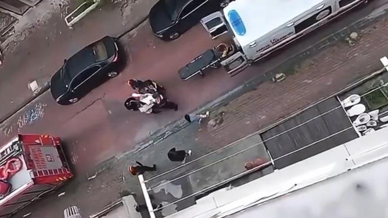 Komşu Nermin Hanım, "Ben evde otururken alt komşum beni aradı. 'Hanım abla çok bağırıyor. Bir sıkıntı var heralde. Eşi, 5 buçuk arabasına binip gibi gitti' dedi. Ondan sonra biz hemen aşağıya indik. Ben seslenince komşum, 'Nermin bana ne olursun yardım et, beni çok dövdü' diye bağırdı. İtfaiye ‘ye haber verildi. Kapıyı üstüne kitleyip gitmiş. İki kadın arkadaşı geldi. 'Kapıyı kırıp neden girmiyorsunuz' dediler. Biz giremeyiz deyince kırıp kapıyı açtılar. Hep beraber içeri girdik. Yatak odasında 'Her yerim kırık' diye bağırıyordu. Sağlık ekipleri geldi, müdahale edip götürdüler. Çok sevdiğim bir komşum, Mustafa bey de çok terbiyeli, ahlaklı bir beydir. 3 yıldır burada oturuyorum, hiç bir yanlışını görmedim. Arkadaşı beni niye aramadın deyince 'telefonumu da alıp gitti' dedi. Telefonunu da alıp gitmiş.