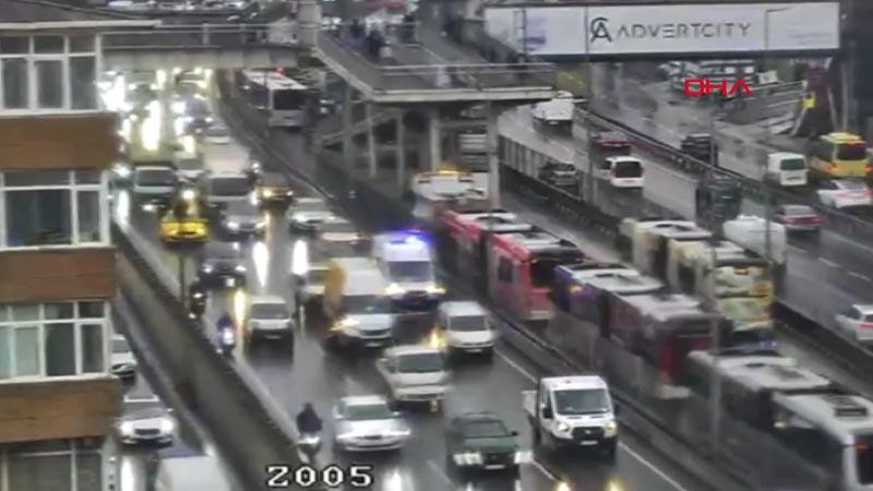 Kaza nedeniyle metrobüs yolunda trafik bir süreliğine aksadı. Metrobüslerin çekilmesiyle trafik normale döndü.