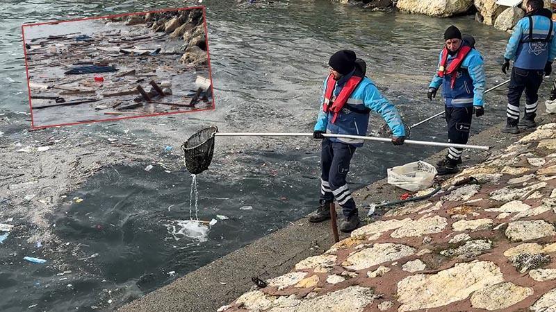 Sahile vuran çöp ve teknelerin enkaz parçaları görevliler tarafından denizden tek tek toplandı. Çöpler torbalara konulduktan sonra kamyonetlere yüklendi. İDO İskelesi’nin bulunduğu noktaya dalgalarla çok miktarda pet şişe ve çöp taşındığı görüldü.