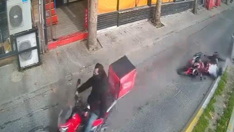 Avcılar’da sürücüsünün hakimiyetini kaybettiği motosiklet yere düşerek savruldu. Motosikletteki iki kişi yaralanırken, kaza güvenlik kamerasına yansıdı.