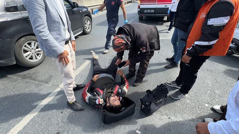 Avcılar'da motosikletli sürücü otomobile çarptı. Kazada Motosikletli kurye yaralanarak hastaneye kaldırıldı.