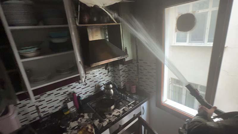 Alevlerin sıçramasıyla aspiratördeki elektrik hattı tutuştu. Üst katlarda bulunanlar yoğun duman ve kokuyu fark edince yardıma koştu. Evde bulunan anne ve 2 çocuğu güçlükle kapıyı açtı ve komşuların da yardımıyla bina dışına çıktılar. Olay yerine gelen itfaiye ekibinin müdahalesiyle yangın büyümeden söndürüldü ve binadan duman tahliyesi yapıldı. Sağlık ekipleri ise dumandan etkilenen anne ve iki çocuğunu ilk müdahalenin ardından ambulansla hastaneye kaldırdı.