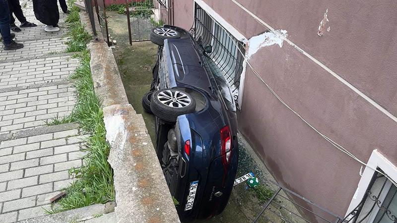 Avcılar'da sürücüsünün direksiyon hakimiyetini kaybettiği otomobil, binanın bahçesine düştü. Kazada yaralanan otomobilin içindeki 2 çocuk ambulansla hastaneye kaldırıldı.