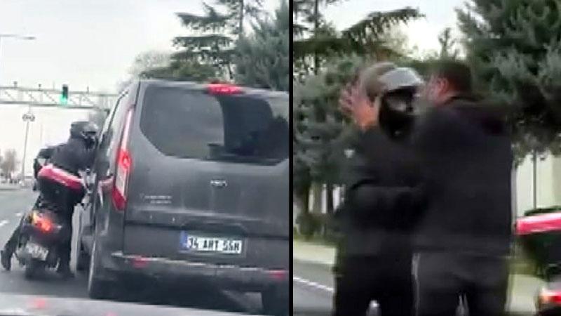 Cihangir Mahallesi Petrol Ofisi Caddesi'nde seyir halindeki bir motosiklet sürücüsüyle hafif ticari araç sürücüsü arasında tartışma çıktı. Kısa sürede büyüyen tartışmada motosiklet sürücüsü araca yanaştı. İkili araçlarından birbirlerine vurmaya başladı. Daha sonra sürücüler araçlarından inerek kavgaya devam etti. Çevredekilerin de araya girmesiyle kavga bir süre sonra sona erdi.