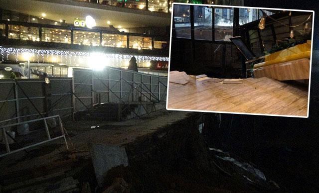 AVM'nin yanındaki rezidans inşaatında toprak kaydı; kafedeki çökme korkuttu