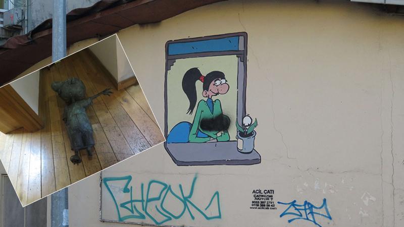 Kadıköy'de karikatürist Oğuz Aral'ın Türk mizahına kazandırdığı Avni'nin heykeli devrilirken, duvardaki Sıdıka'nın resmi ise sprey boya ile karalandı. Karikatür Evi Sorumlusu Meriç Karçal, "Sıdıka birkaç güne boyanacak, Avni heykeli de bakımı yapıldıktan sonra yerine konulacak" dedi.