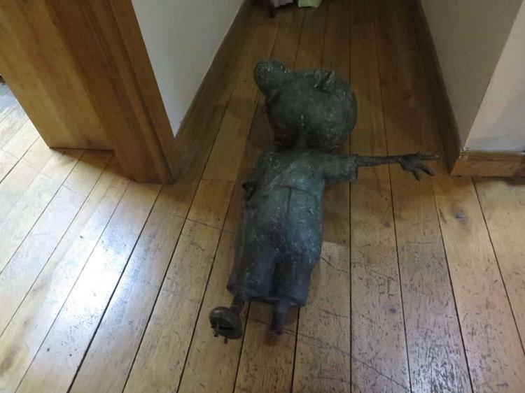 Bir şey mi oldu, düştü mü, düşürüldü mü? Daha öncesi bir çalınma durumu olmuştu acaba tekrar niyetlenmeme mi oldular diye bize de sordular. Heykel ağır bir heykel, yaklaşık 80-100 kilogram ağırlığında.