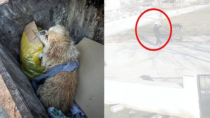 Ayaklarını bağladığı köpeği çöp konteynerine attı; o anlar kamerada