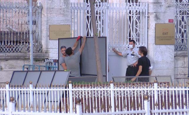 Ayasofya Camii'nde çalışmalar devam ediyor. Müze tabelası sökülürken İstanbul Emniyet Müdürü Zafer Aktaş da incelemelerde bulundu.