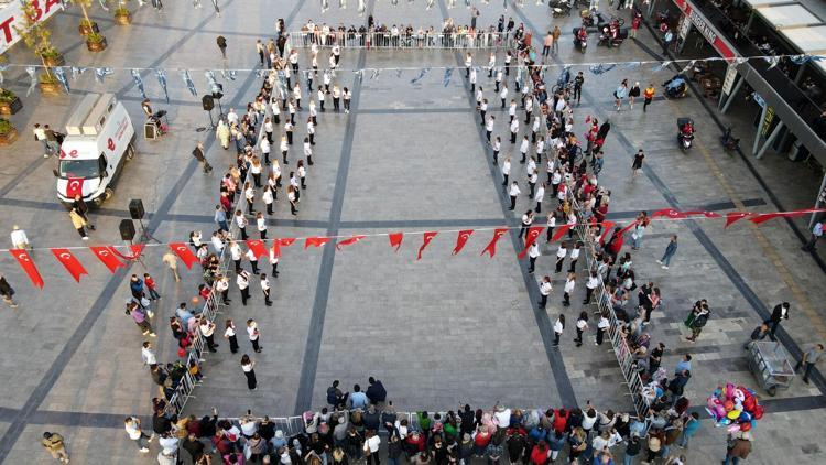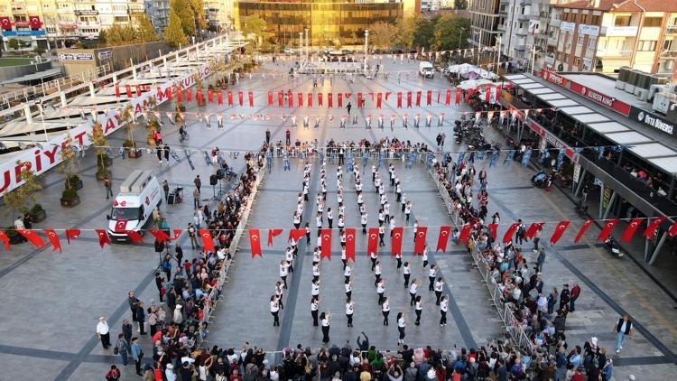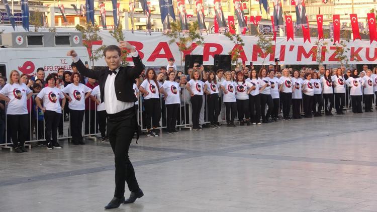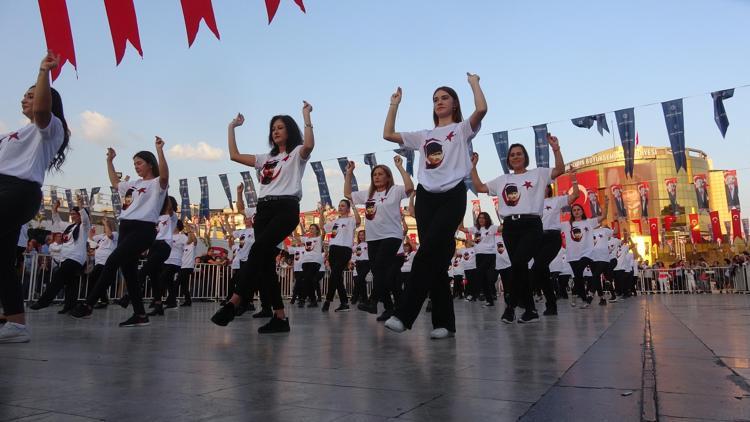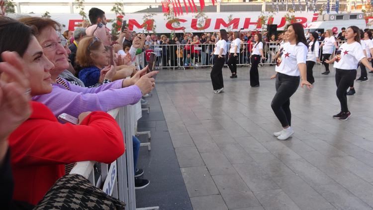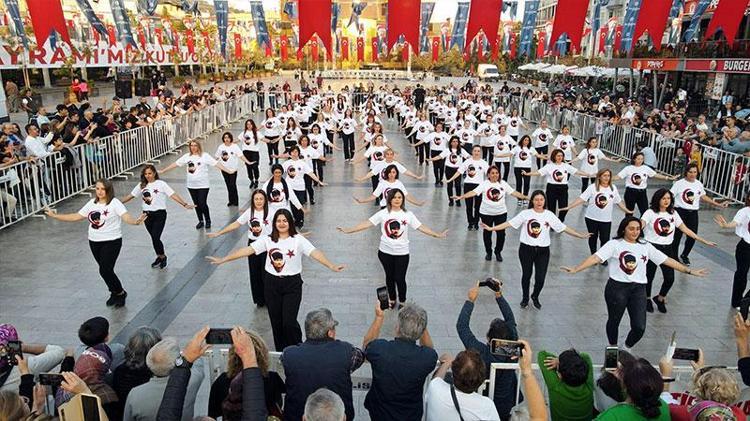 2 ay boyunca prova yapan 99 kadın, Kent Meydanı'nda Cumhuriyetin 99'uncu yılında zeybek gösterisi sundu.