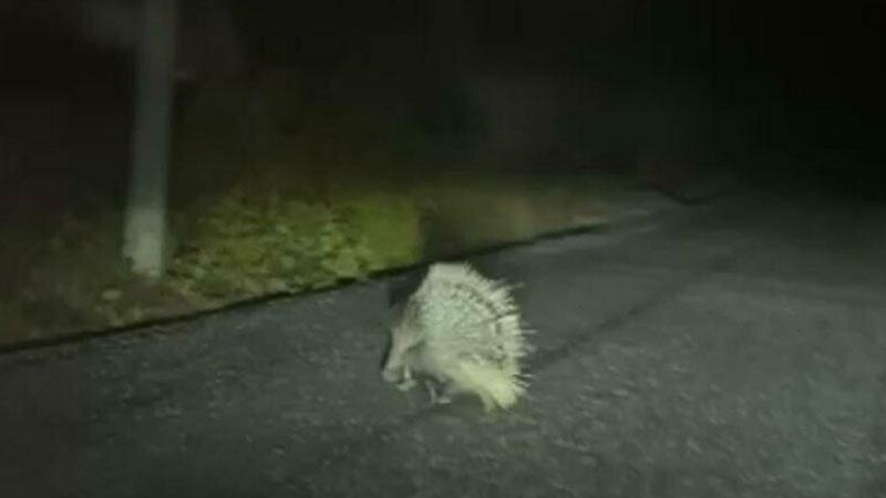 Aydın'da, nesli tehlike altında bulunan oklu kirpi görüldü.