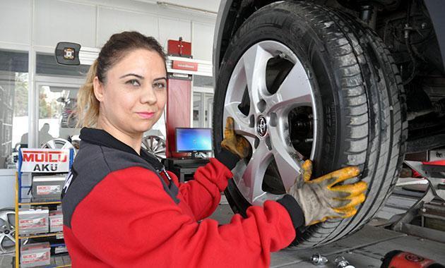 Liseyi 19 yıl önce bitirdikten sonra oto lastikçi firmasında muhasebeci olarak işe başlayan Deniz Işık, sektörü sevince işin pazarlamasını yaptı. Bir süre sonra oto lastiği satışı da yapmaya başlayan Işık, kendi iş yerini açarak, patron oldu. Işık, 4 yıldır hizmet verdiği Efeler ilçesindeki iş yerinde, 2 de erkek oto lastik ustasına iş verdi.