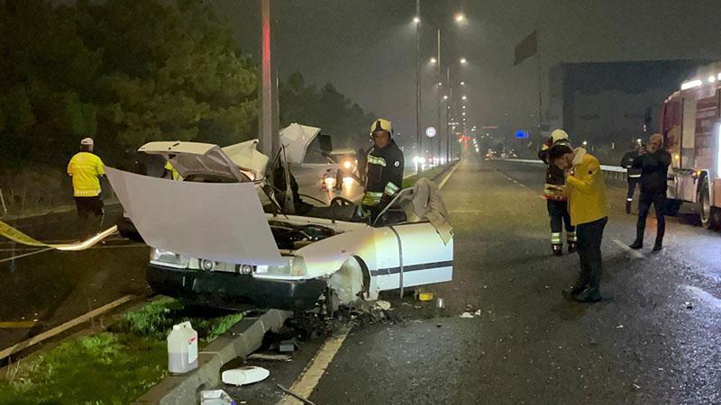 Yolda savrulan otomobil aydınlatma direğine çarptı. Çarpmanın şiddetiyle otomobil ikiye bölünürken, ihbar üzerine bölgeye sağlık, polis ve itfaiye ekipleri sevk edildi.