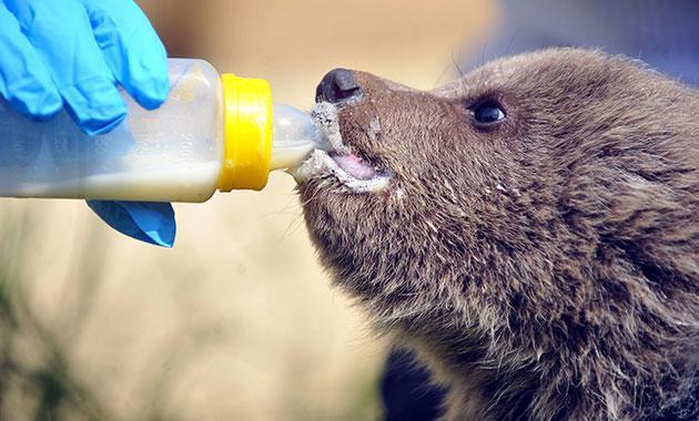 Ayı barınağının 3 yavrusu kefir ve balla besleniyor