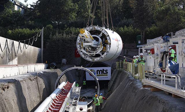 Ayvalıdere Yağmur Suyu Tüneli'ne tünel açma makinesi (TBM) indirme töreni düzenlendi.