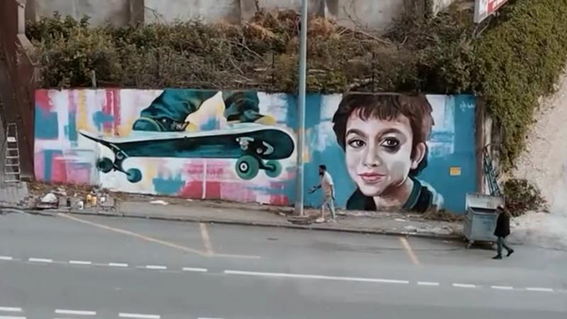 Azerbaycanlı ressam Hatai Abdullayev, İstanbul'da uğradığı bıçaklı saldırı sonucu hayatını kaybeden Mattia Ahmet Minguzzi'nin (15) portresi ve kaykayını Edirne'deki bir istinat duvarına çizdi.