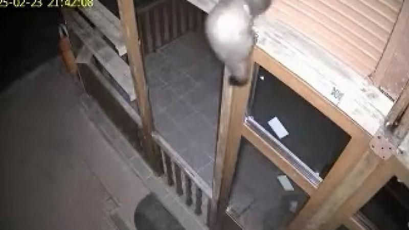 Çankırı'da bir bağ evine girmeye çalışan sansar ile nesli tehlike altındaki vaşak, kameralara yansıdı.
