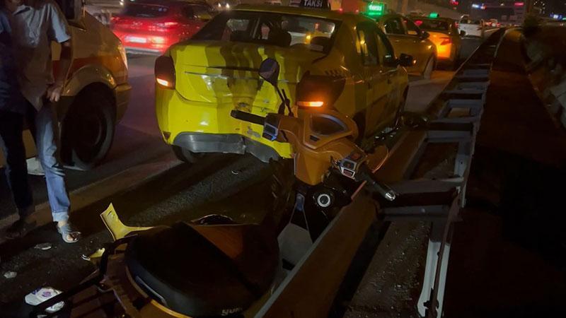 Bağcılar'da, arıza nedeniyle emniyet şeridinde duran taksiye çarpan motosikletli yaralandı