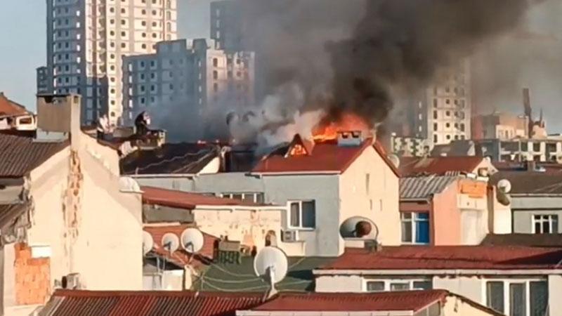 Bağcılar'da çatı katında çıkan yangına vatandaşlar kovalarla müdahale etti