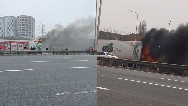 Yangın saat 13.00 sıralarında Kuzey Marmara Otoyolu Bağcılar İSTOÇ mevkiinde plastik sandalye yüklü 07 SAD 86 plakalı TIR’da çıktı. Sancaktepe ilçesine doğru seyir halinde olan TIR’ın plastik sandalye yüklü dorsesinin arka tarafında henüz bilinmeyen bir nedenle yangın çıktı. Yangını fark eden TIR şoförü, dorseyi şoför kabininden ayırdı. İhbar üzerine olay yerine Bağcılar ve Başakşehir’den itfaiye ekipleri sevk edildi. Yanan plastik sandalyeler kısa sürede söndürüldü. İtfaiye ekipleri plastiğin yeniden yanma ihtimaline karşı uzun süre soğutma çalışması yaptı. Yangın nedeniyle tek şeride düşürülen Kuzey Marmara Otoyolu İstanbul Havalimanı yönüne trafik yoğunluğu oluştu.